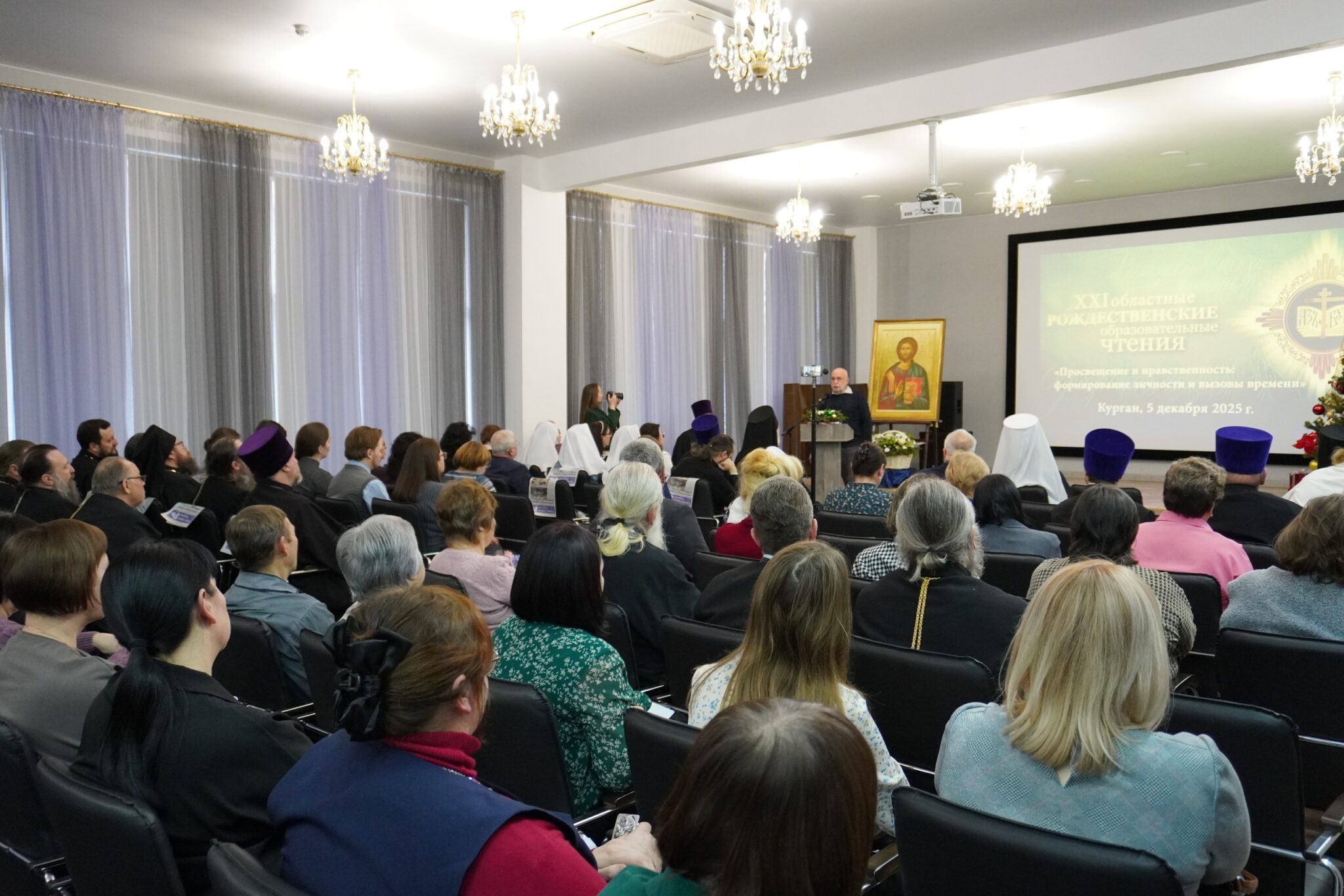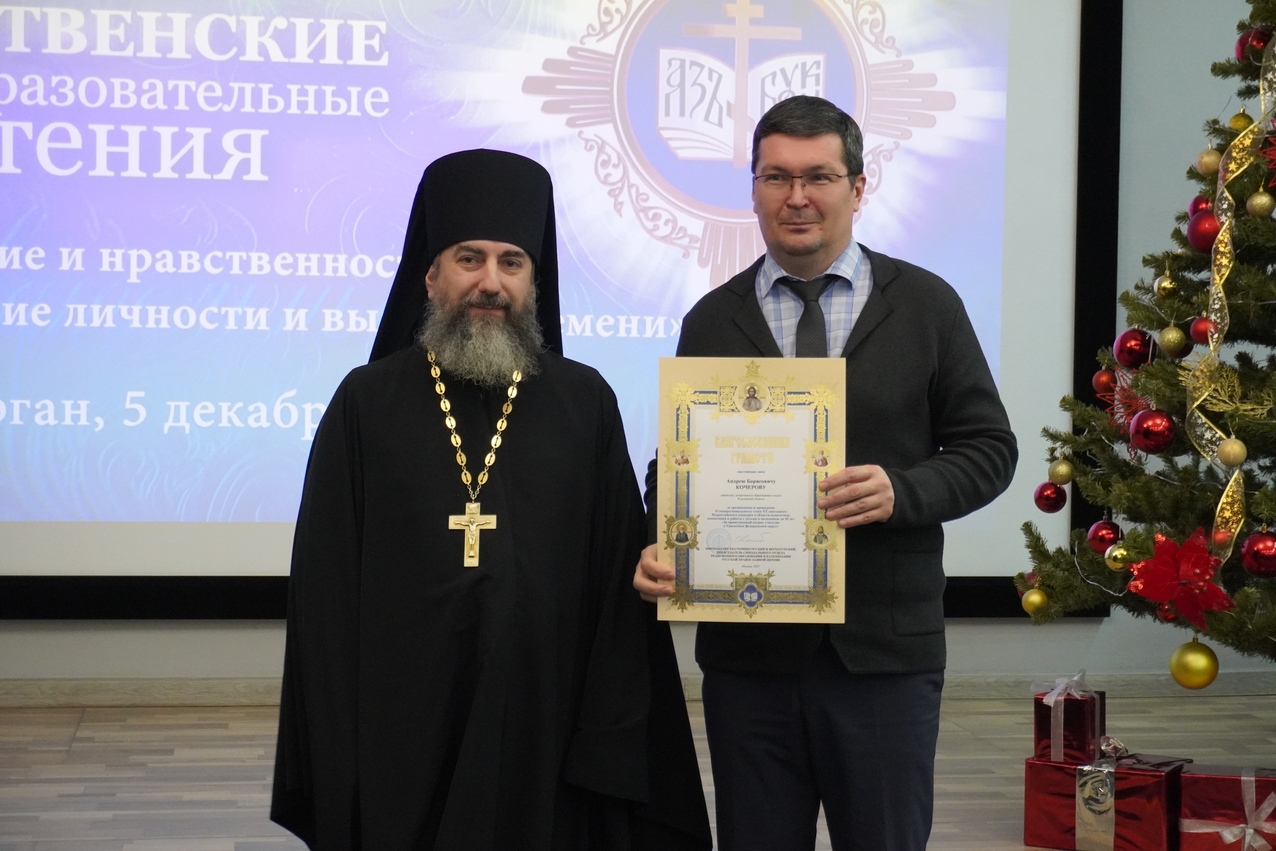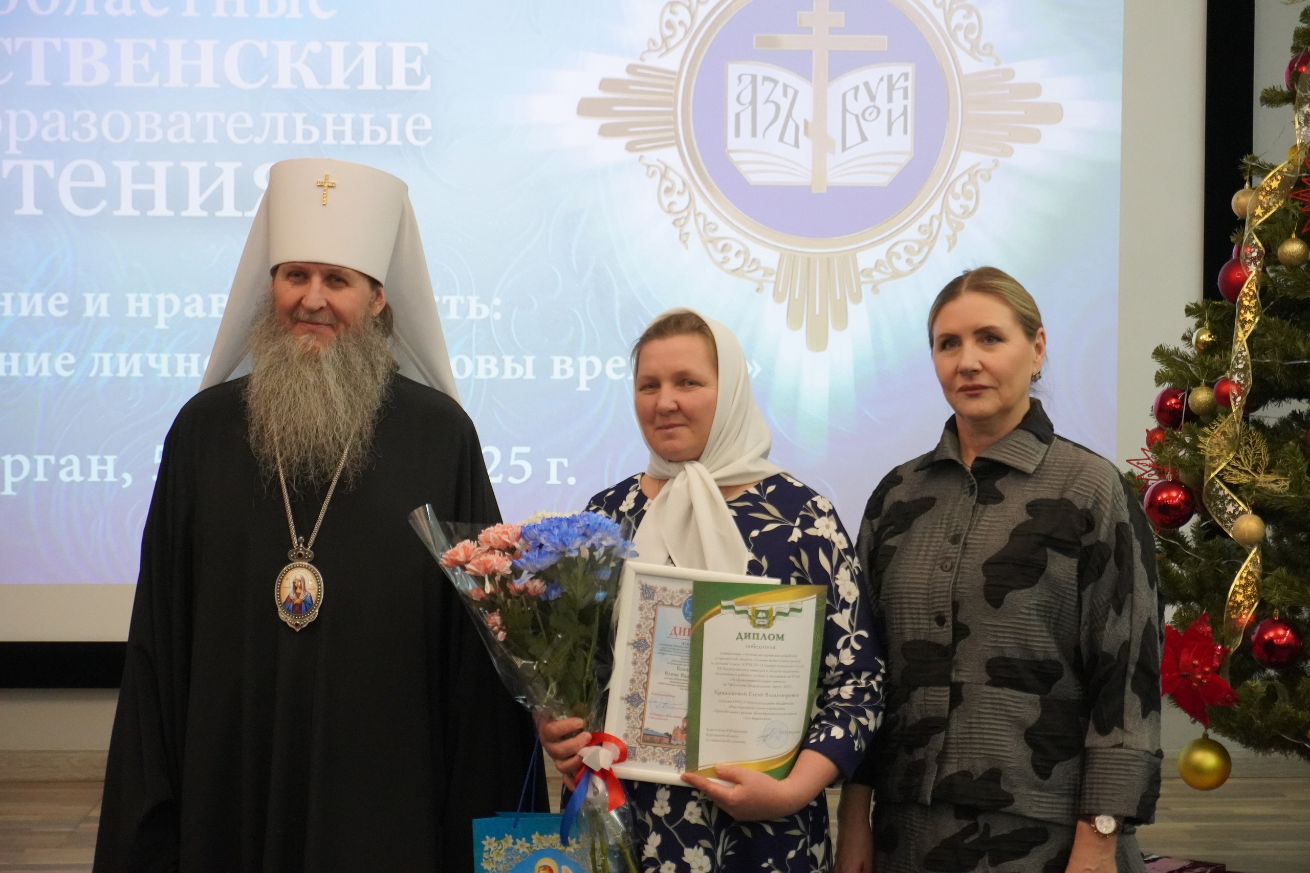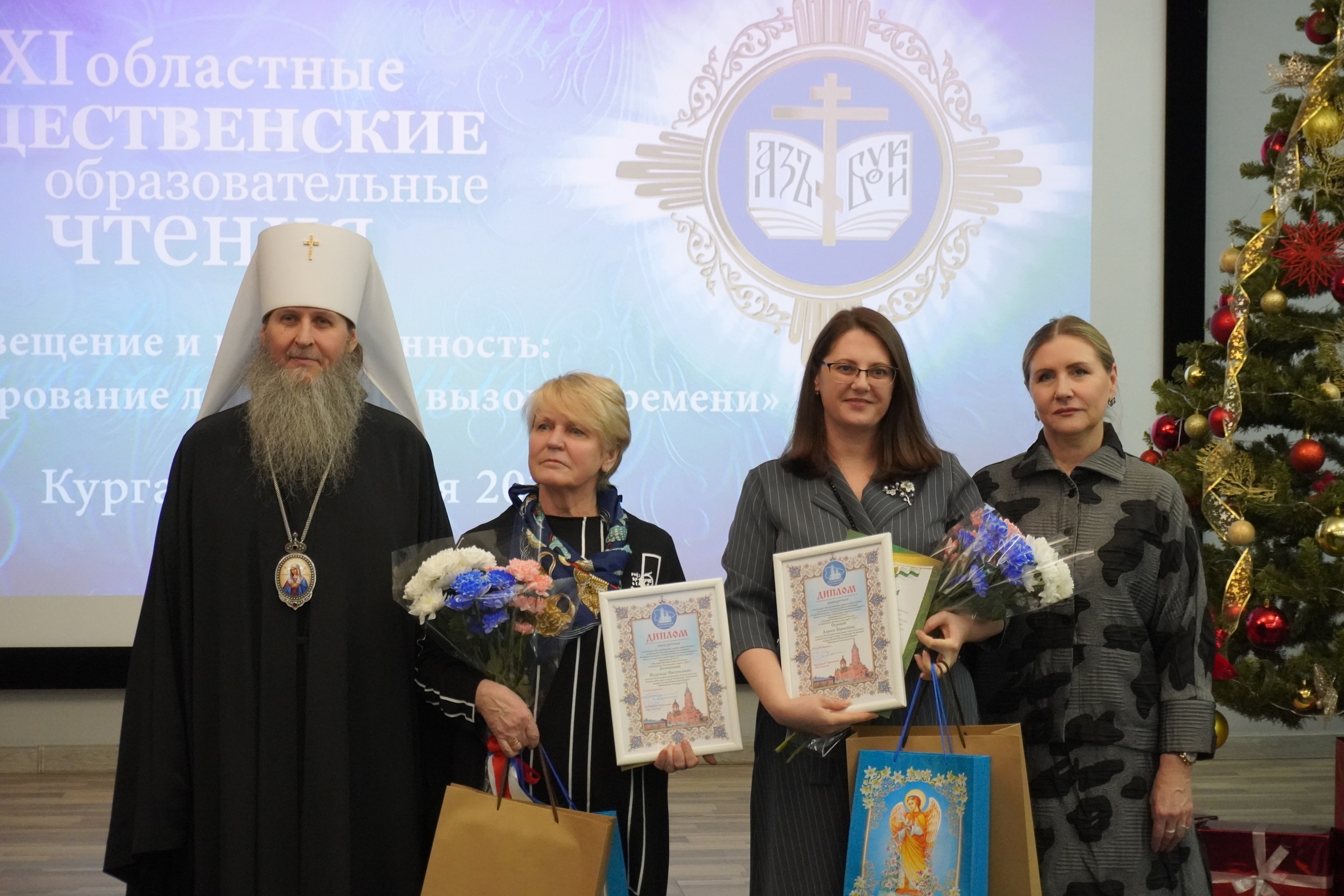 На пленарном заседании XXI областных Рождественских образовательных чтений «Просвещение и нравственность: формирование личности и вызовы времени», которое прошло 5 декабря в концертном зале Курганской областной библиотеки им. Югова, состоялось награждение победителей. Церемонию награждения проводили митрополит Курганский и Белозерский Даниил и заместитель губернатора по социальной политике Наталья Кирилова.
