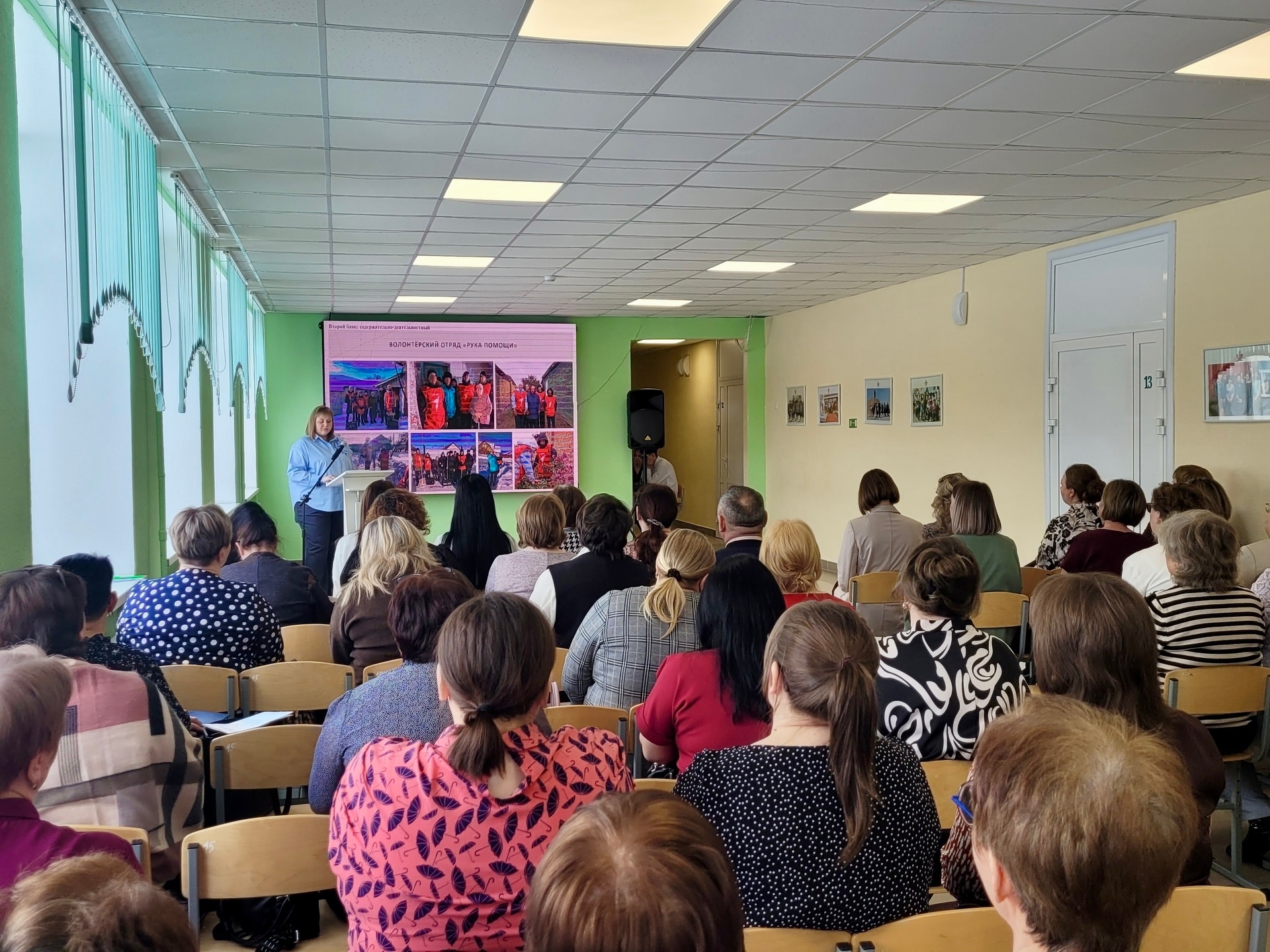 С приветствием к коллегам обратилась директор школы Потрехалова С.А., а заместитель директора по ВР Меньщикова П.В. представила системный подход к к гражданско-патриотическому воспитанию, реализуемом в Частоозерской школе.